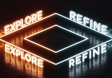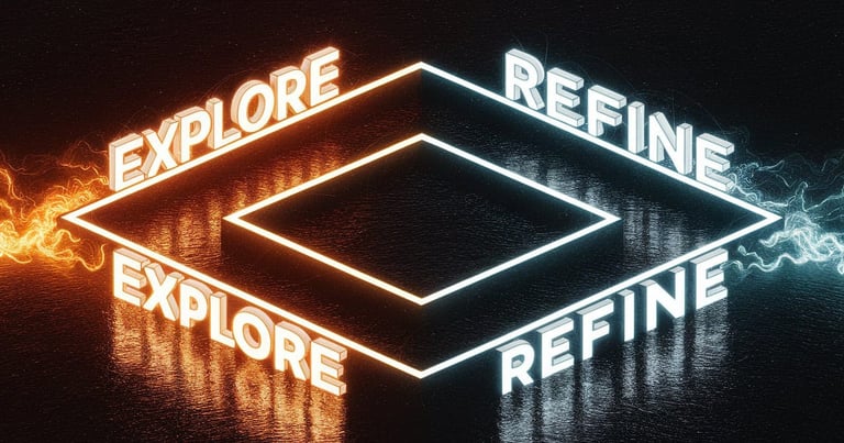 Dual prompting approach between exploratory and detail-refining phases - alternating approaches to optimize.